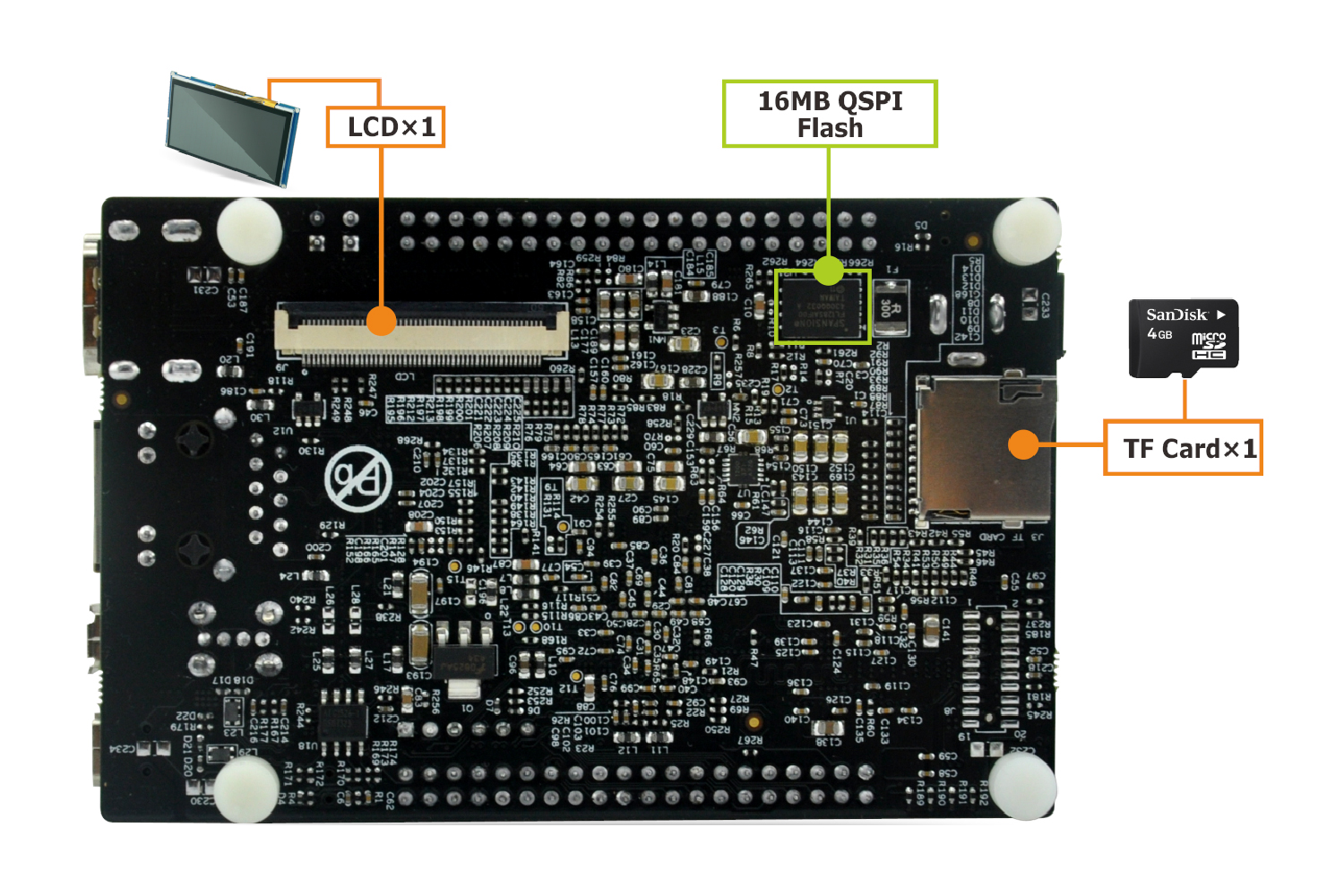 千兆网口、USB Host、HDMI、LCD、Camera、TF卡等接口;