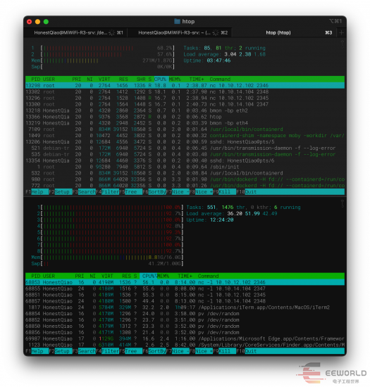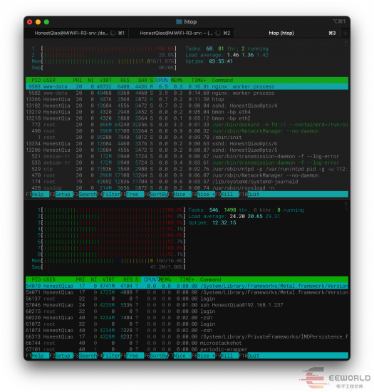 开发板上的nginx跑满了一个cpu,而macOS上的cpu则都跑满了。