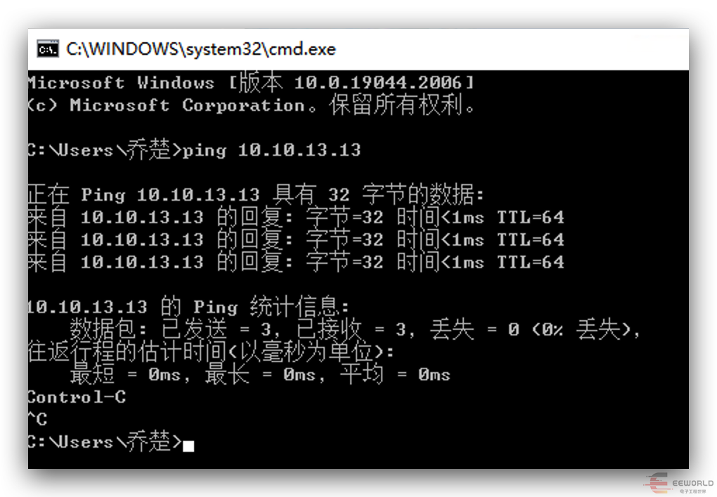 然后,在开发板上,检测能否连通两台笔记本上的IP: