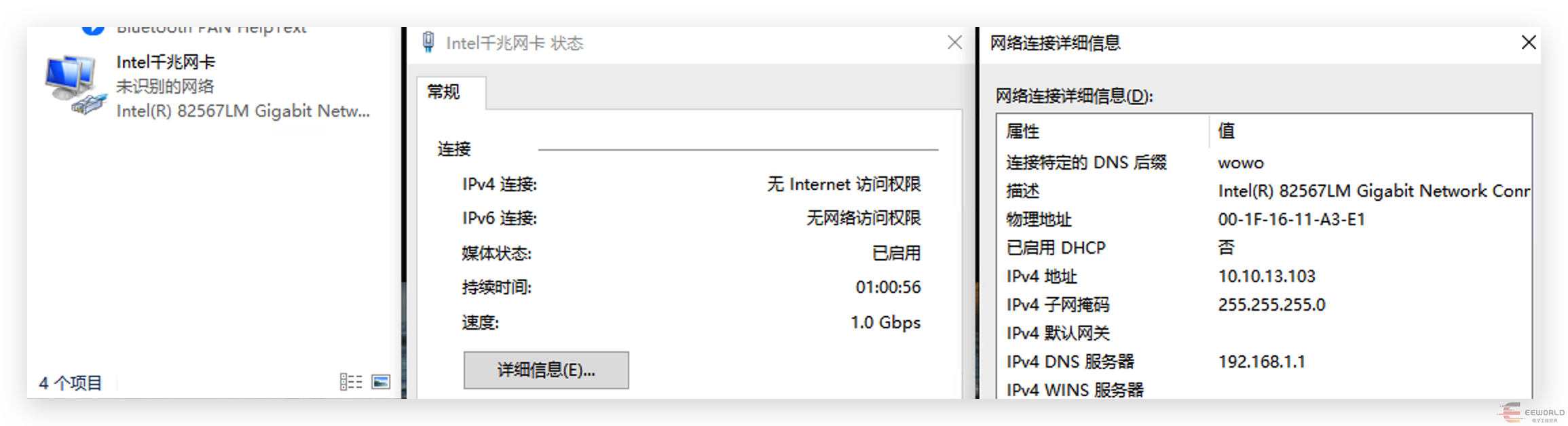 以及ThinkPad的Windows系统中Intel千兆网卡的IP地址: