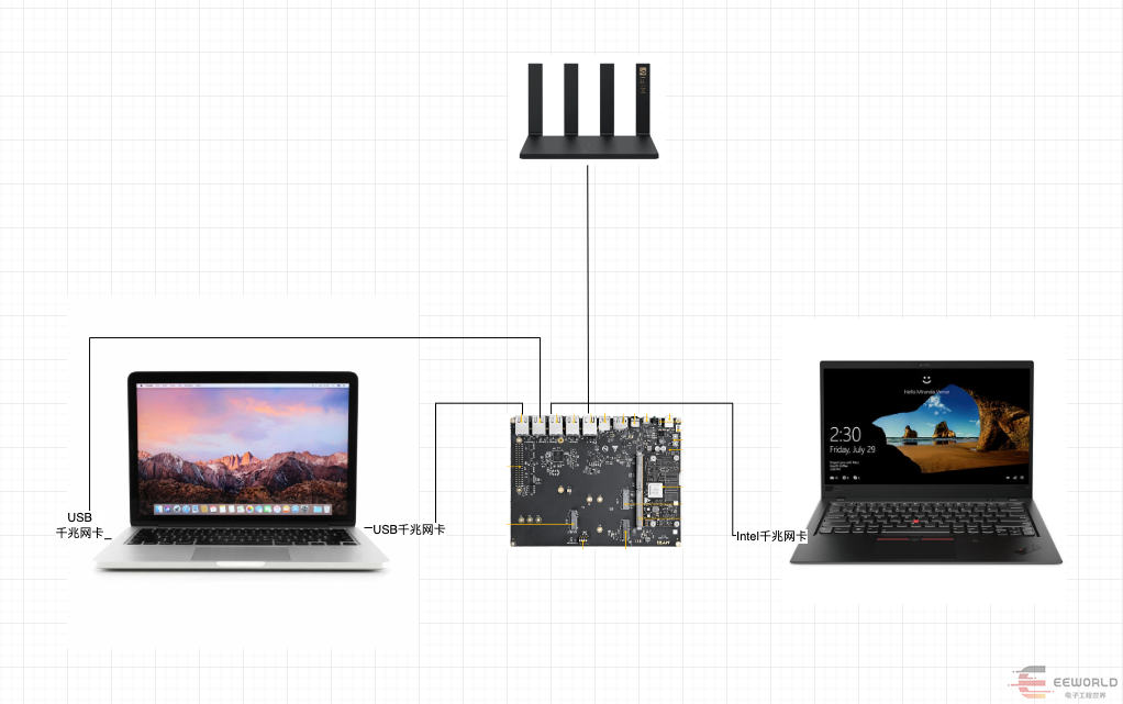 为了得到最理想的测试速度,笔记本和开发板之间,直接连接,不经过第三方。