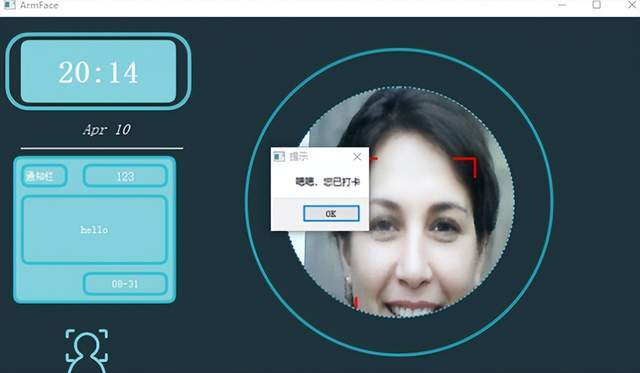 由于没有数据库,只能打印一些信息。当两个数据相等时就进入下一步,判断打卡了。由于没有数据库,就展示下电脑端的效果吧。